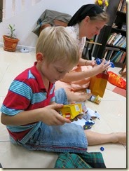 Story time. Jube always rides on his dad’s back for story time. And yes, Dad is almost always on his stomach for story time.
